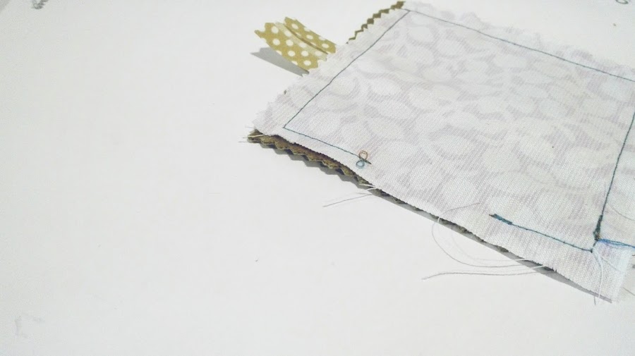 - Elige la medida que prefieras, yo hice uno de 8x8, 10x10 y 12x12. Y coloca el frente de una tela con el frente del bies y por último la tela superior con su frente hacia abajo.