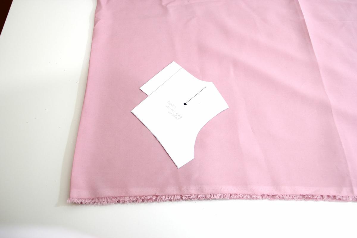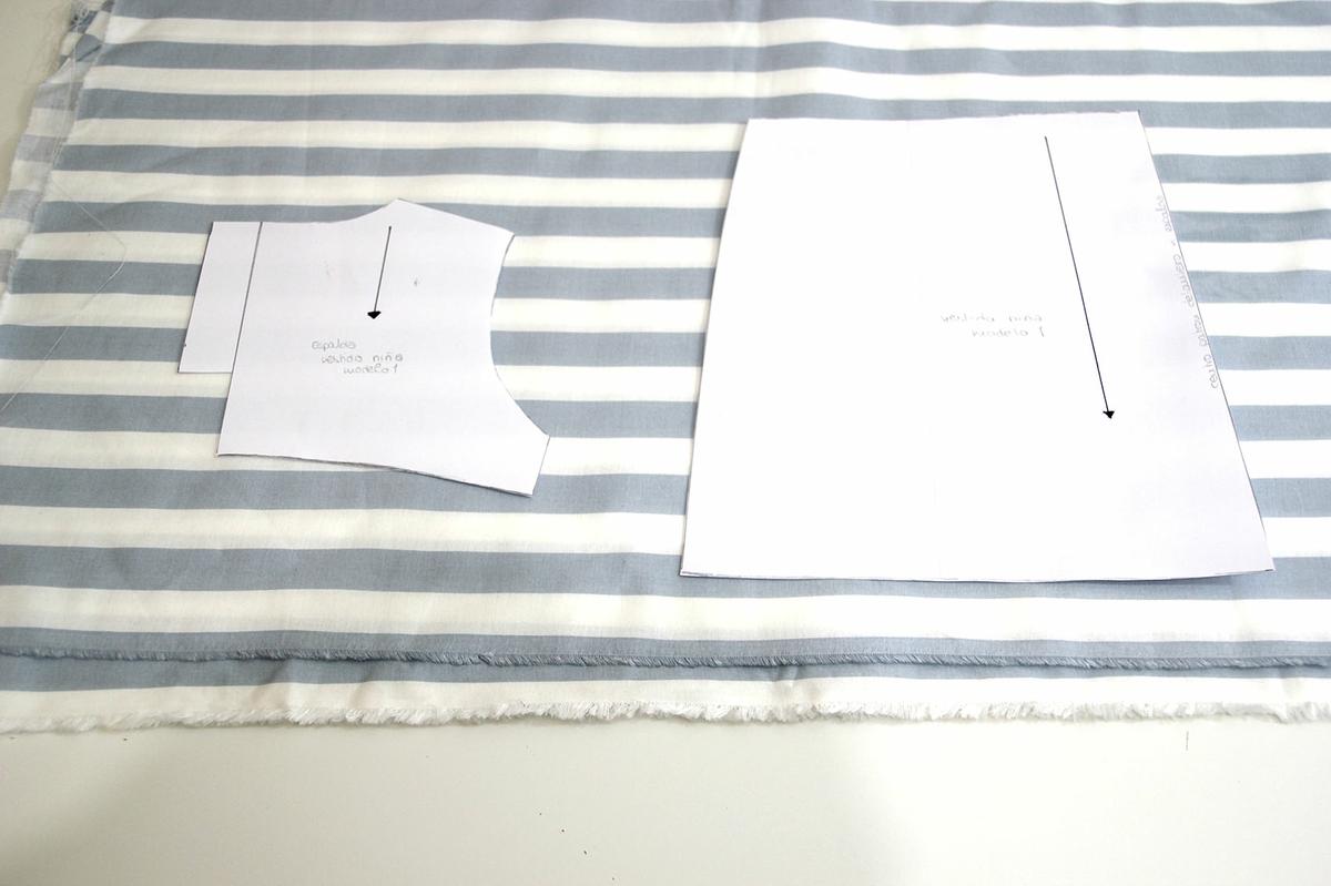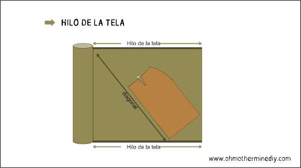 Según nos indica la dirección de la flecha, debemos colocar el patrón sobre la tela de tal forma que quede paralela a la dirección del hilo, es decir, la dirección que nos indica el patrón y la dirección del hilo de la tela, han de tener el mismo sentido.