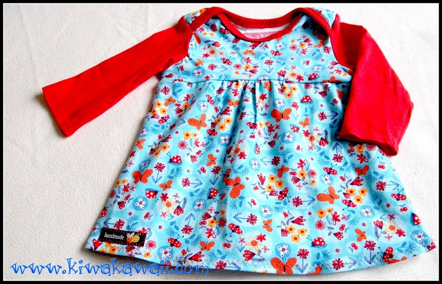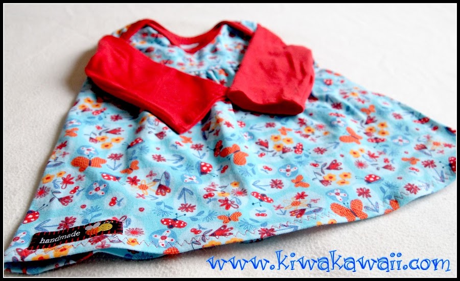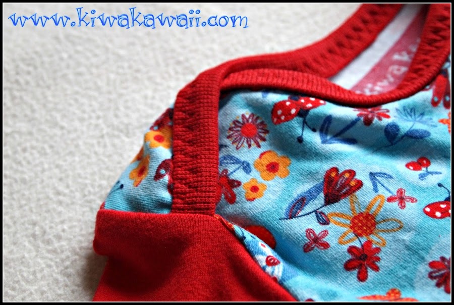 Elegí rojo vivo para las mangas y los ribetes, y estampado muy alegre para el cuerpo. ¿Os suena la tela? La vistéis AQUÍ.