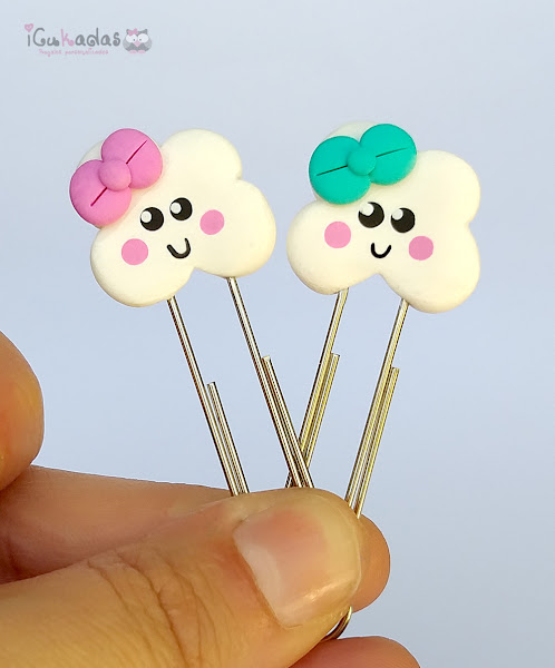 Las nubes ya sabéis que pueden llevar los lazos en los colores que queráis, y las gotas de agua se pueden hacer en azul cielo también, que creo que quedarían genial.