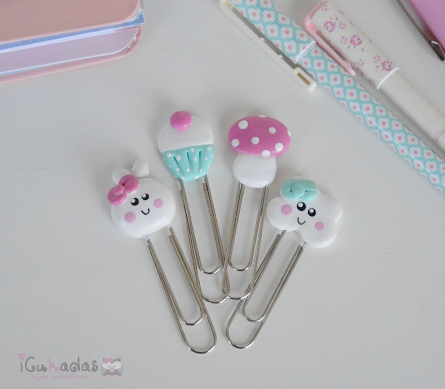 Como no, para empezar, he elegido mis colores favoritos, el rosa y el mint y he hecho unos clips bien grandes, para que podamos sujetar bien nuestros papelitos y que nos sirvan a la vez de separadores para libros o la agenda.