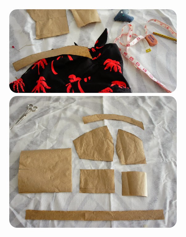 You should know that this is easier than it looks like. Clothes are like a puzzle, whose pieces are separated by seems, so just take your that dress, sewing pins, pencil and pattern paper....and Let´s get started!