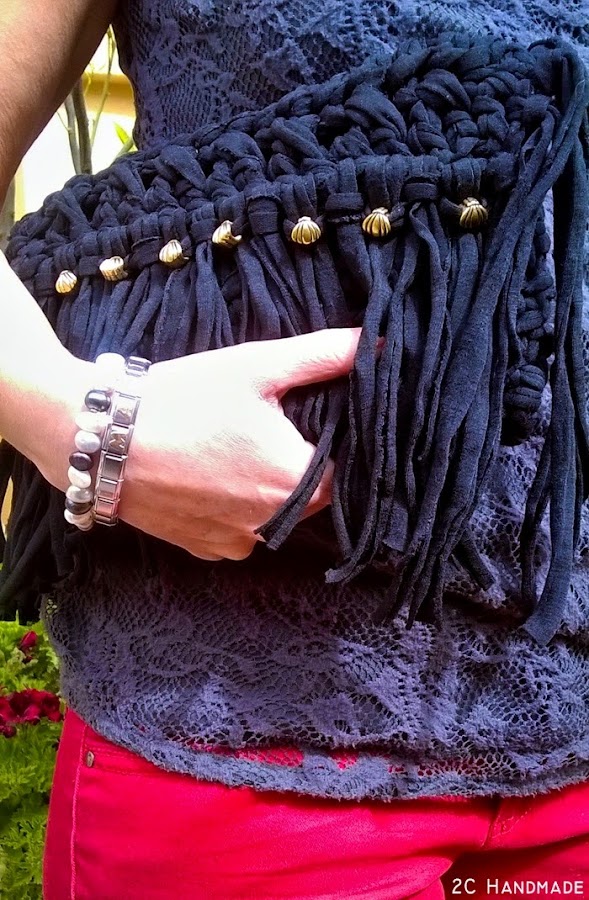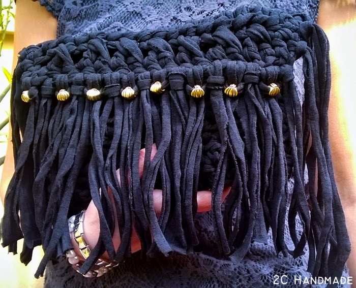 Hoy vuelvo a publicar en el blog para enseñaros mi último trabajo realizado, se trata de un clutch negro de flecos. La persona que me lo encargó, lo quería de mano, sin cadena y con flecos, así que mi cabeza se puso a imaginar cómo iba a ser, y después de unas cuantas pruebas, decidí que de esta forma era ideal para ella. Esto es una de las cosas positivas que tienen los bolsos hechos a mano, que puedes personalizarlos a gusto de cada persona.