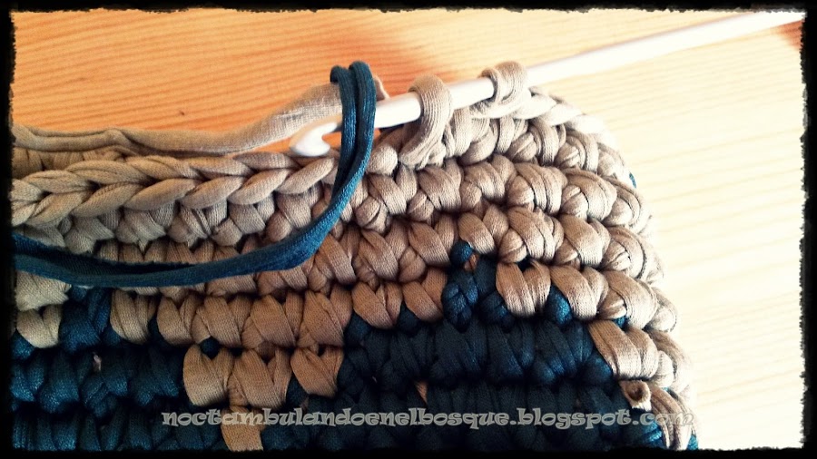 Y en las siguientes fotos os muestro cómo se hace el cambio de color. No olvidéis que cuando se teje con esta técnica el color que no estamos usando no se corta, sino que se va ocultando con los puntos.