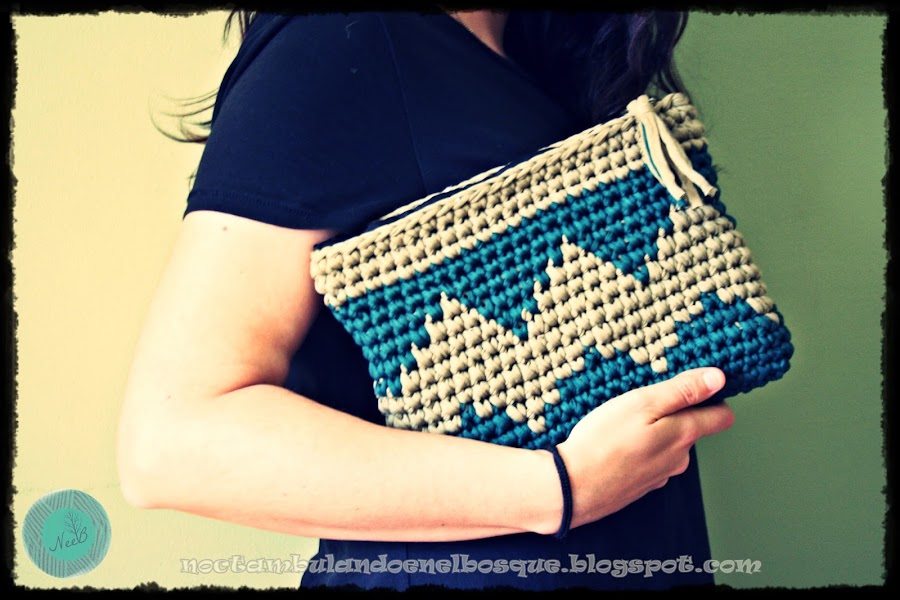 Hace años, cuando empecé a hacer carteritas, tejía primero una pieza larga, la doblaba y luego unía los laterales, pero después descubrí que hay una forma mucho más fácil para hacerlo de una sola pieza sin necesidad de unir luego y que además el resultado es infinitamente mejor. Así que a continuación os dejo el patrón con el esquema.