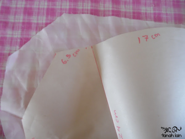 Lo primero que he hecho ha sido el siguiente trazo en papel, lo he separado en tres secciones, una de 17cm, otra de 18cm (la de en medio) y la de la punta que mide 11cm de alto (6.5cm de base y luego hago una especie de triángulo sin punta). Mi trazo tiene 24cm de base.