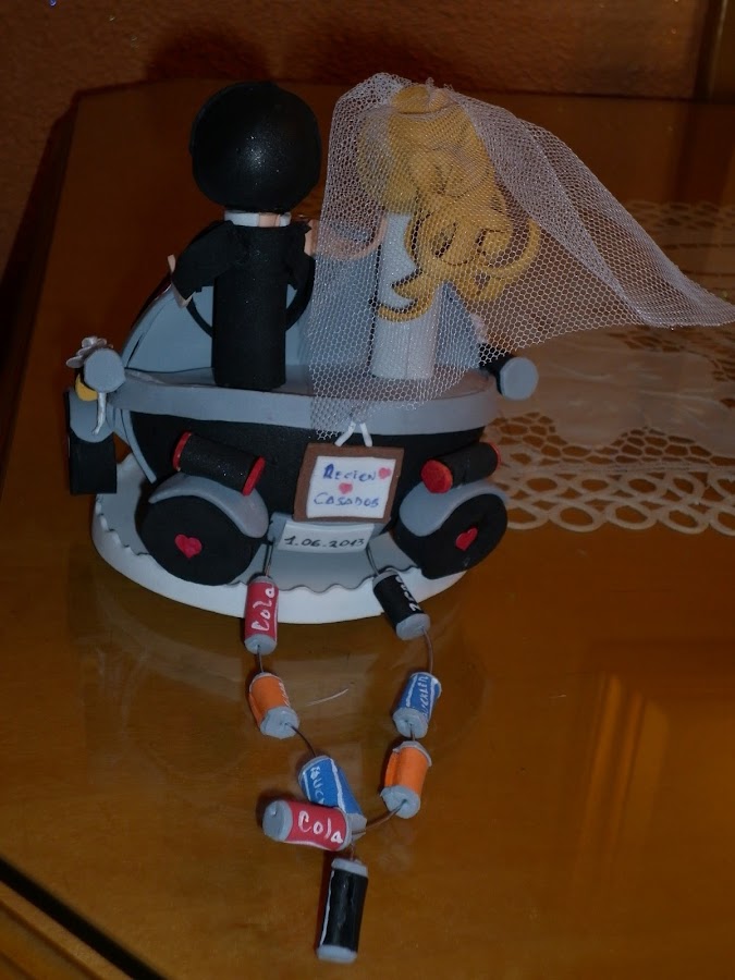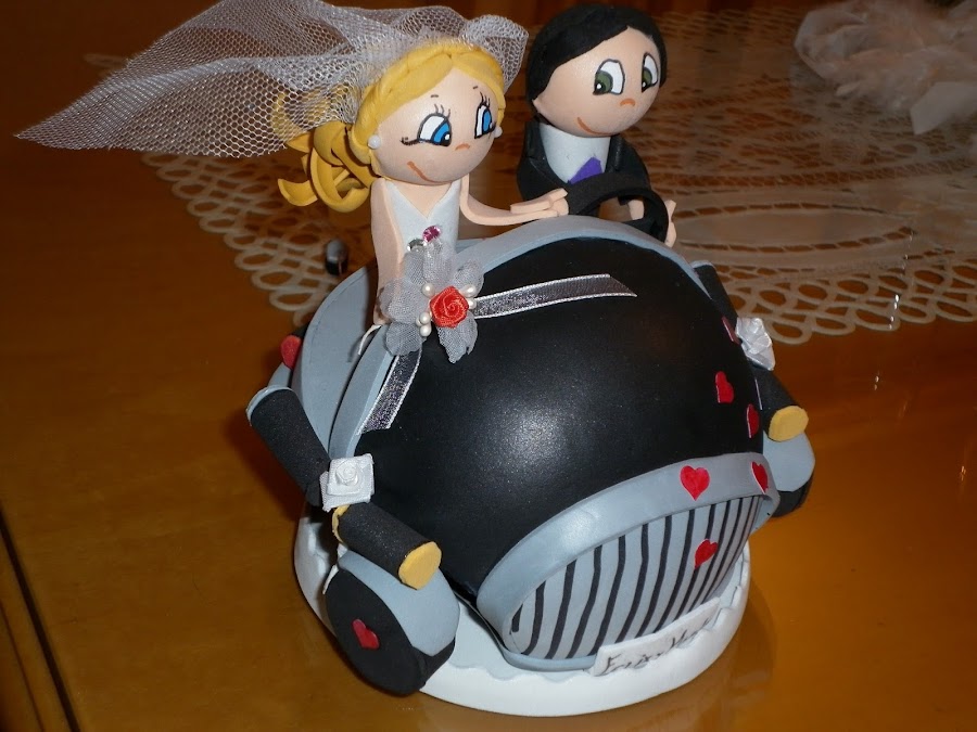 Este coche esta hecho de goma eva para la tarta de los novios.
