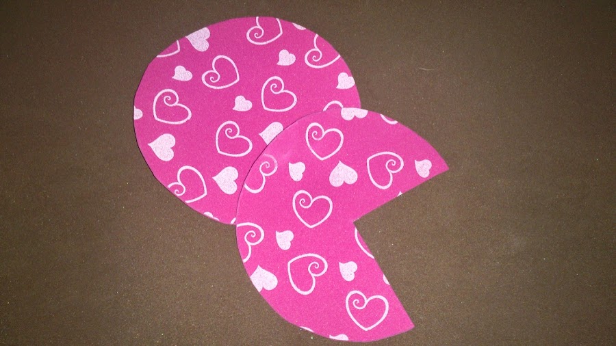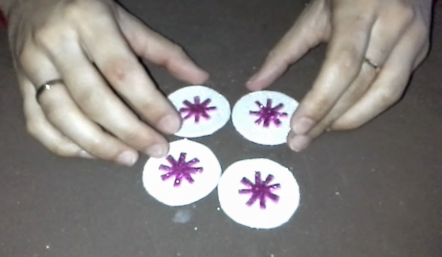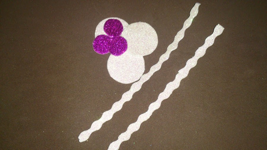 Primero: Recortamos dos círculos de goma eva y les recortamos un cuarto de cada circulo (foto nº 1).