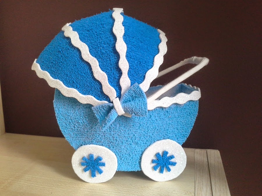 Así queda el cochecito para niño, el que haré con vosotr@s sera para niña y podremos ver los dos terminados. Los pasos a seguir son exactamente los mismos.