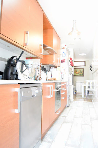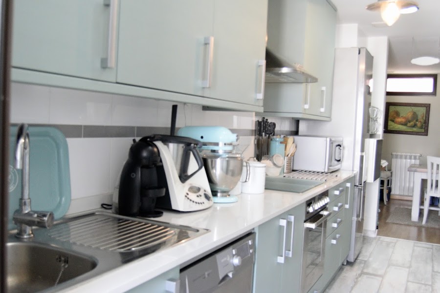 Y el resultado final es este (cocina recogida para la foto, of course, je je). He intentado que en las fotos saliera el color lo más fiel a la realidad, por eso quizá las fotos parecen un poco oscuras pero si bajaba la apertura se distorsionaba el color real. Lástima que el día que hice las fotos estaba muy nublado, pero bueno... creo que el color que aparece es casi exacto a la realidad.