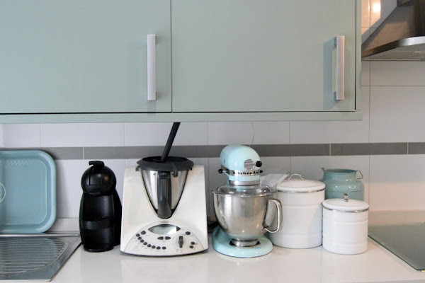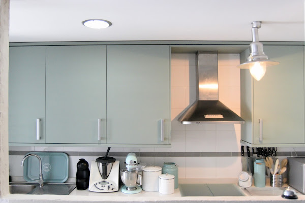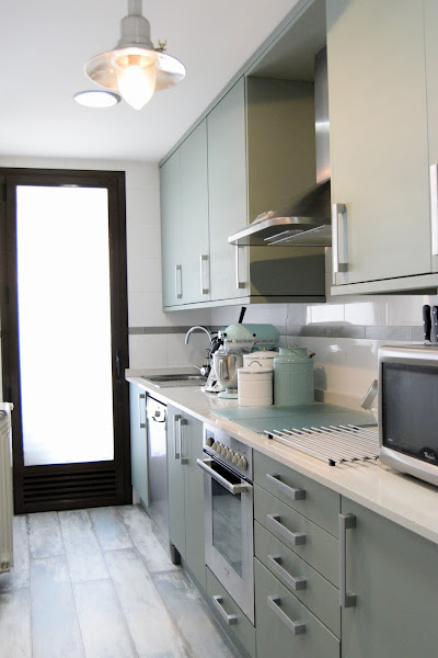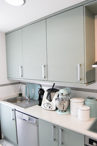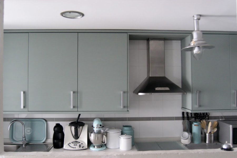 No es la cocina de mis sueños, ni mucho menos, pero al menos ahora sí está más en consonancia con el resto de mi casa y además mi Kitchen Aid y mis lecheras de ikea ahora "pegan" divinamente.