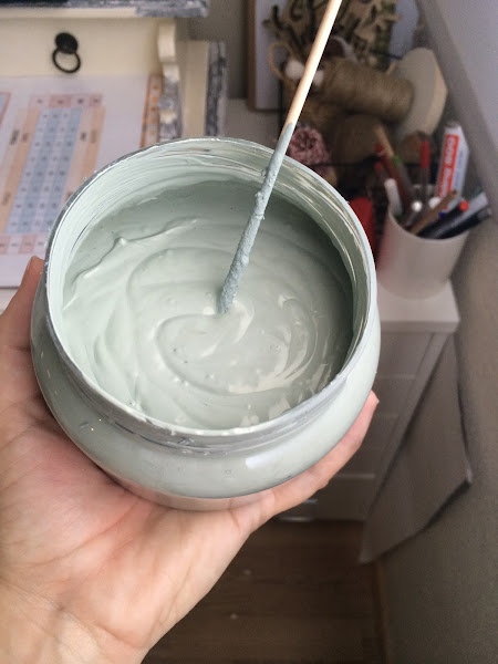 No llegué a gastar los dos botes de chalk paint que compré, así que aproveché a pintar el especiero de ikea que tengo desde hace mil años (lo compré cuando me casé, en 2004, y cuando me mudé de casa no quise dejarlo)