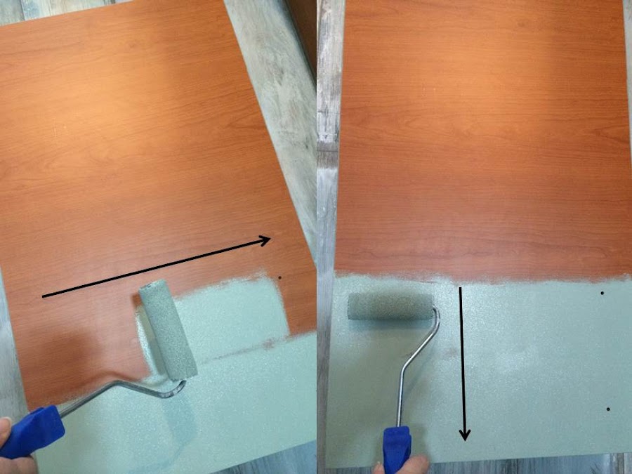Consejo:al pintar pasad el rodillo en horizontal y luego en vertical, sobre la misma zona a pintar.
