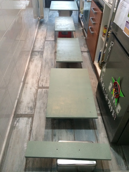 Estoy muy contenta con el resultado, aunque la prueba de fuego la tendremos dentro de unos años, tras ver cómo afecta el tute que le doy a la cocina a esta pintura je je. A ver qué tal aguanta la pintura. De momento sigue en perfecto estado.