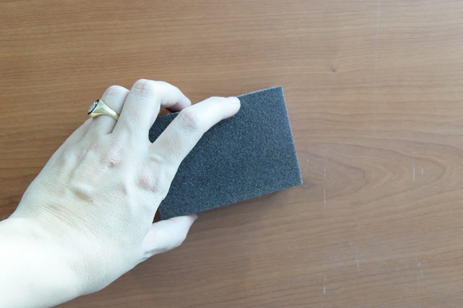 3º.- Ahora toca pasar una lija. No hace falta ni apretar ni insistir en ninguna zona en especial. Solo hay que pasarla por toda la superficie como si estuviérais pasando un paño.