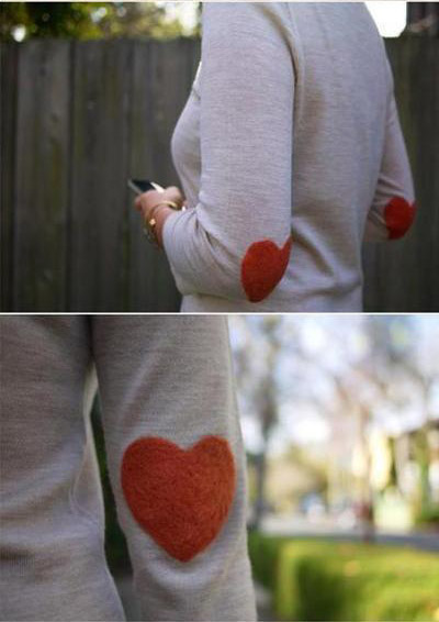 Necesitaras: un jersey, unos alfileres, un molde en forma de corazón, guata (un tejido parecido al que se usa de relleno) del color que queráis, y un trozo de goma espuma para meter dentro de la manga.