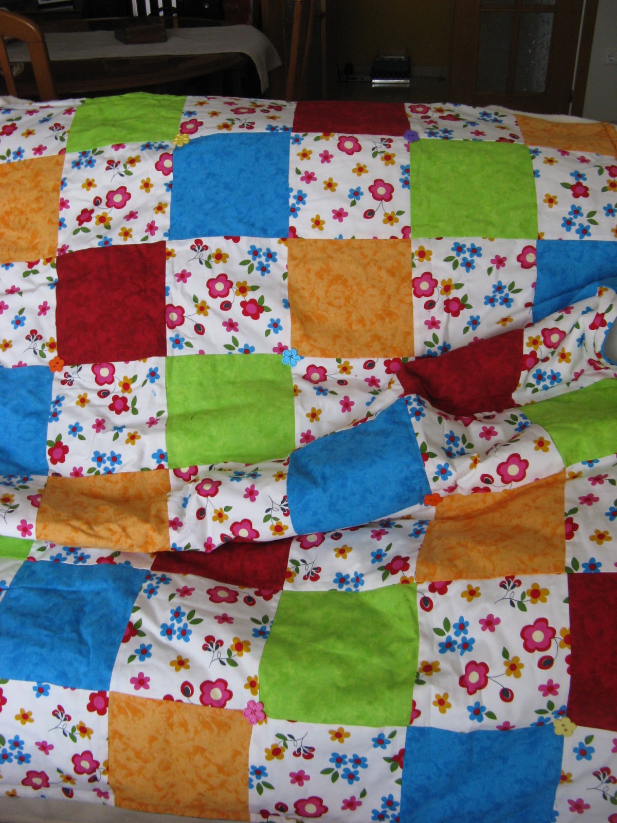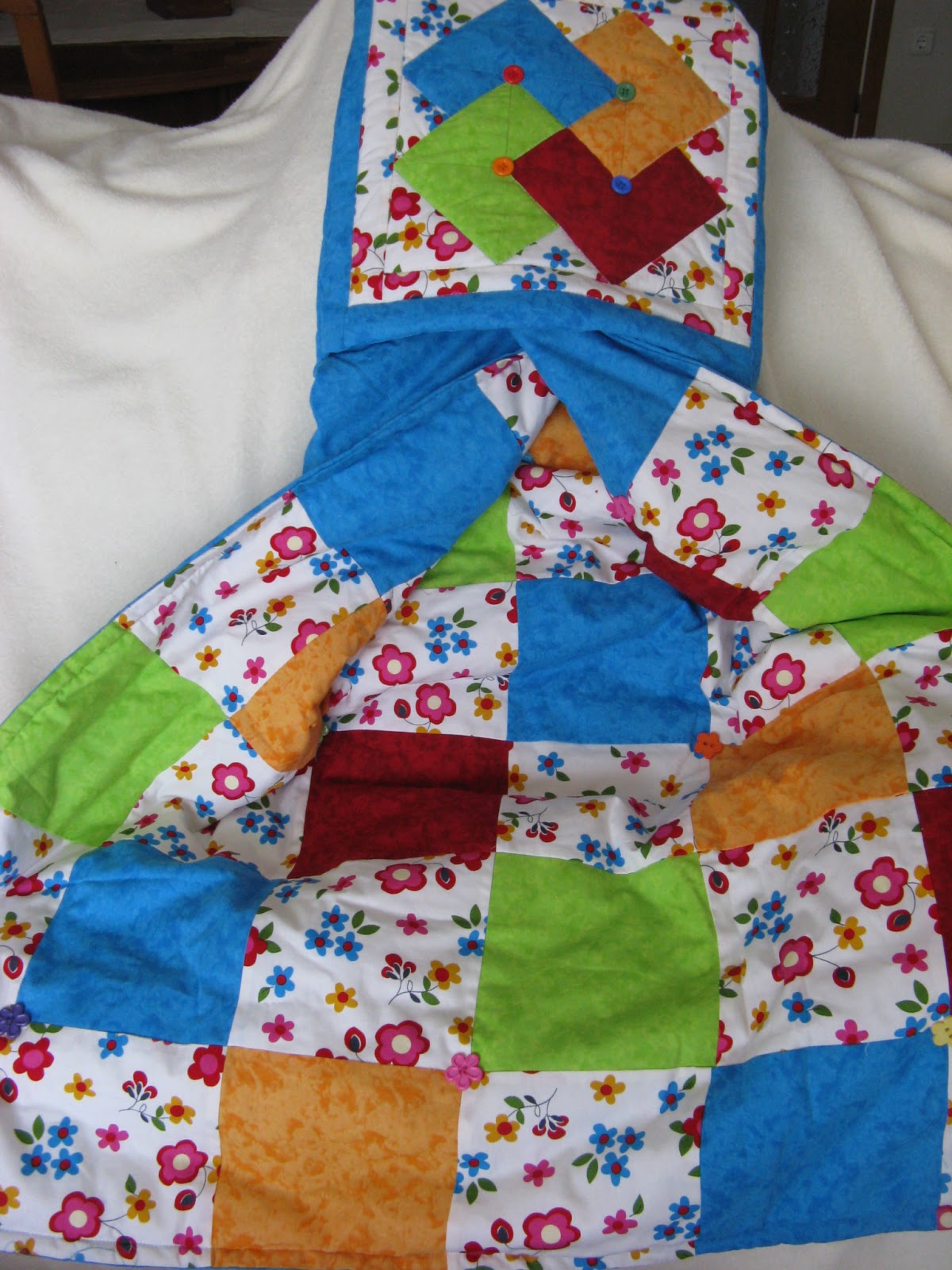 Otro cojin manta, este es muy especial para mi, ya que es para una jovencita que se encuentra convaleciente de un accidente. Ademas este cojin esta hecho a quatro manos ...................... lo hemos hecho entre la DOlors i yo , y hoy lo hemos entregado. Ha gustado no solamente a la destinataria sino a toda la familia