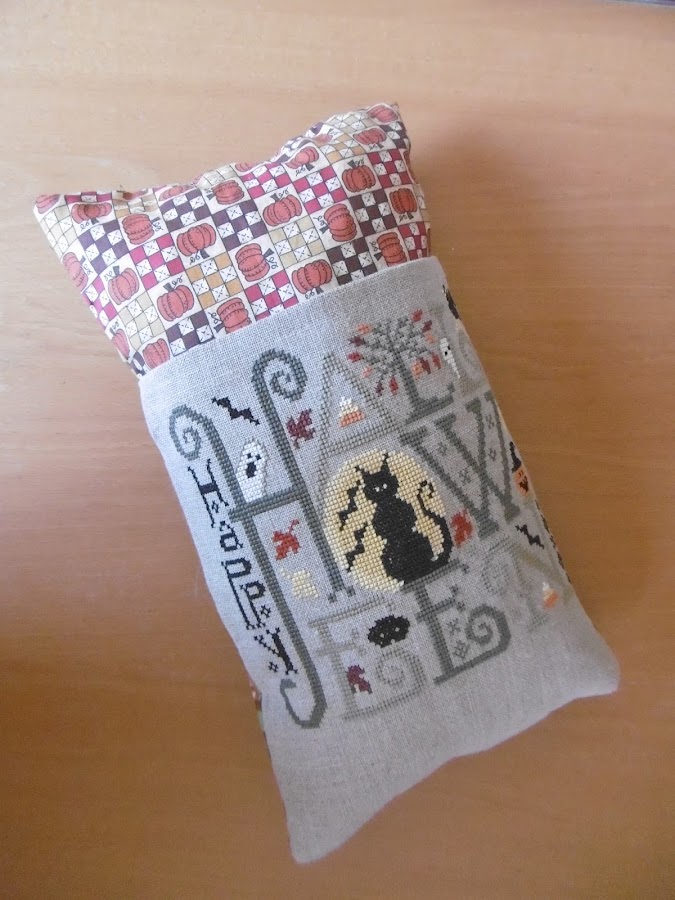 Os enseñe una muestra de lo que tenia el intercambio y el mini-postal....ahora toca el bordado que monte con forma de cojín, el toque especial es que el bordado forma un bolsillo par meter el bordado, las tijeras o el mando de la tele.......