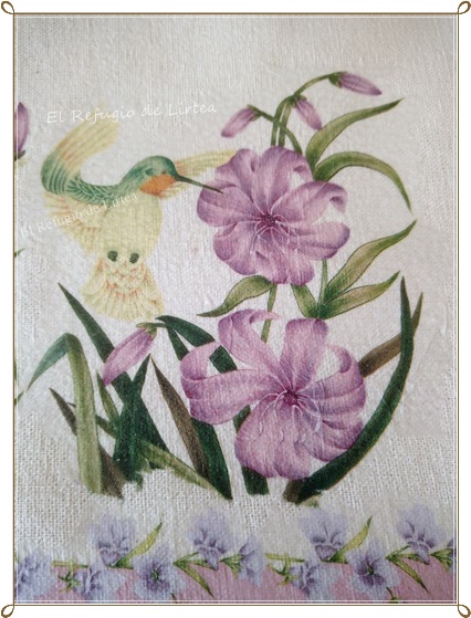 Lo primero que hice fue el decoupage con servilletas. Para eso emplee tres tipos distintos, haciendo varias composiciones uniendo piezas.