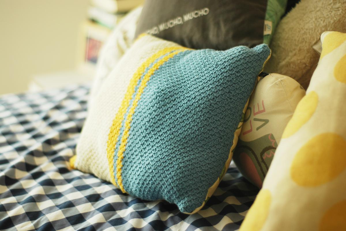 ¡Y ya tenemos nuestro cojín listo! Puedes hacerlo de diferentes tamaños, de un color o más de uno o lo que más te apetezca. Eso si, te recomiendo hacer siempre una muestra, por qué el tejido tiende a encoger.
