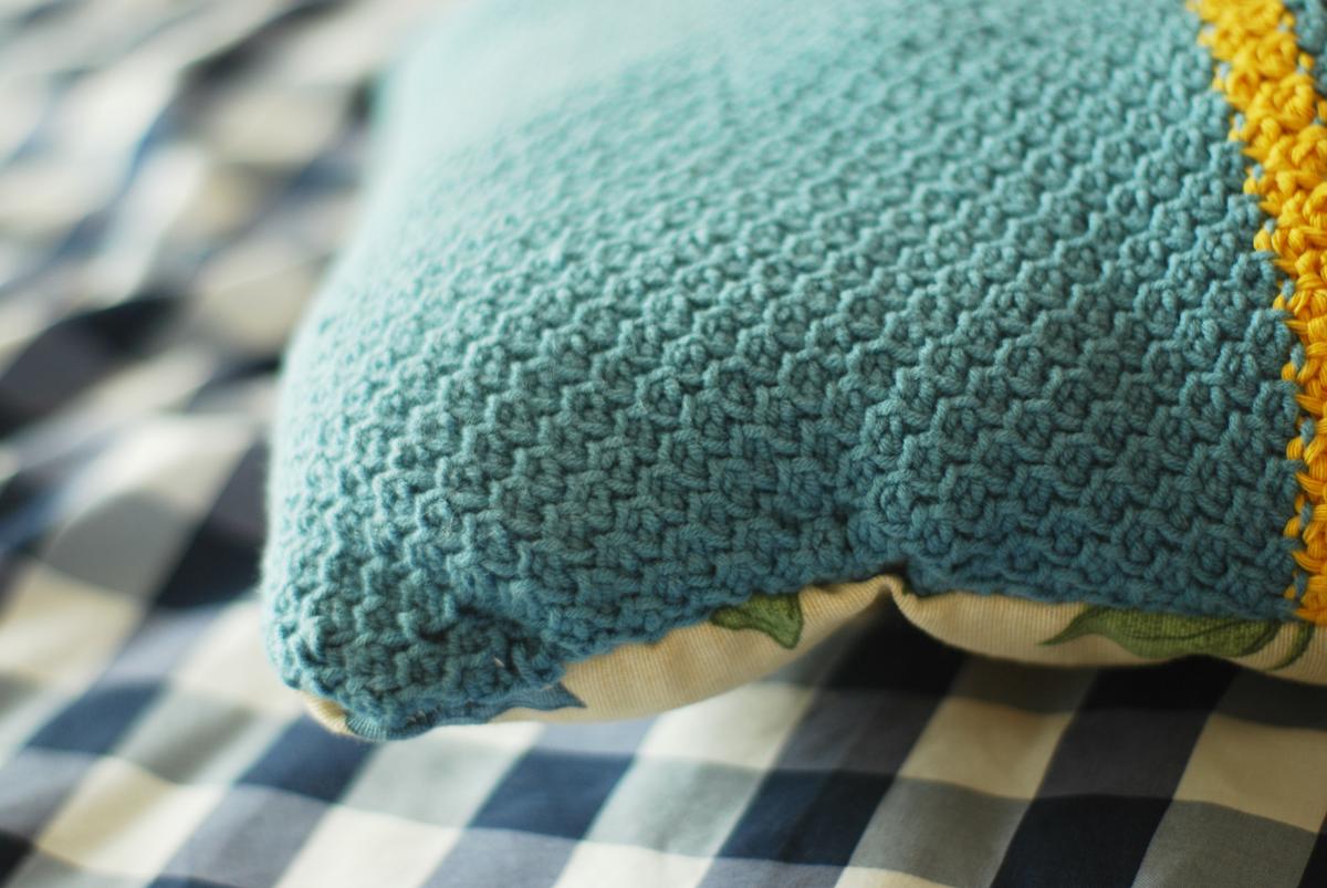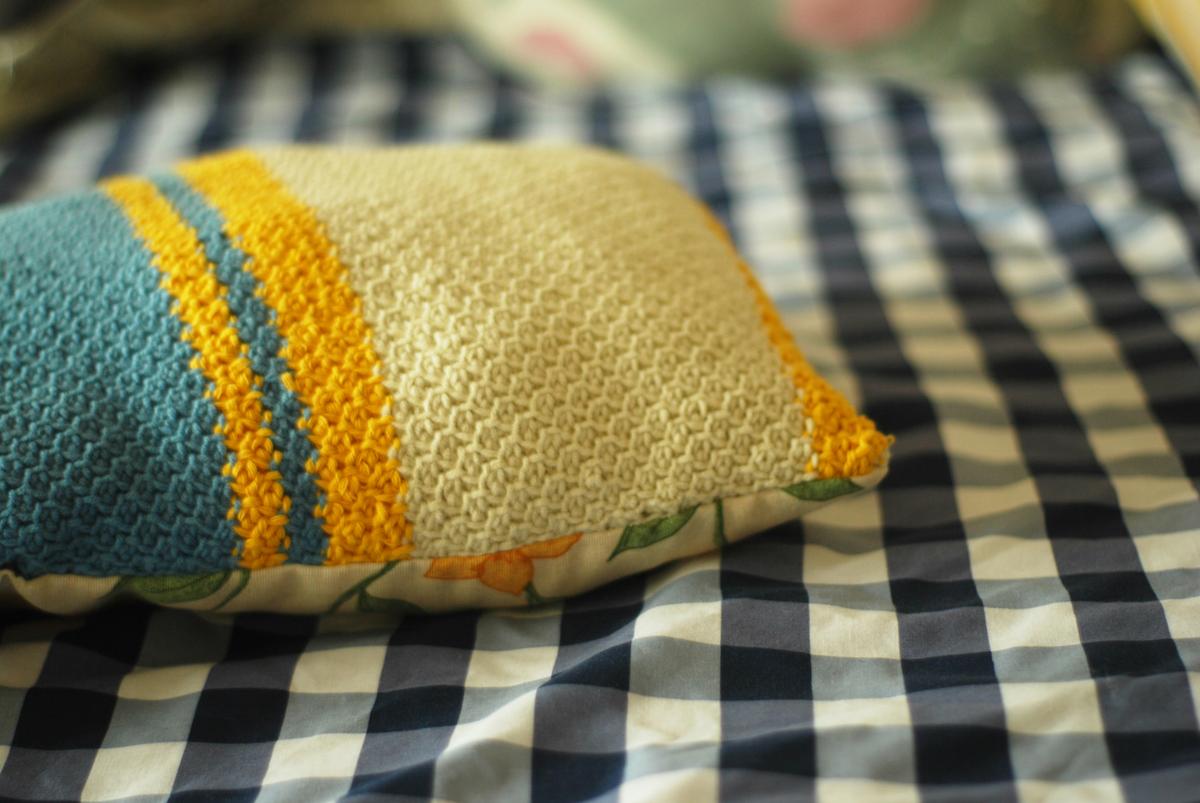 Esta semana os traigo el patrón para hacer este cojín en punto panal, pero con ganchillo tunecino. Me encantan los cojines, tenemos la cama y el sofá llenos, y aún iría poniendo más