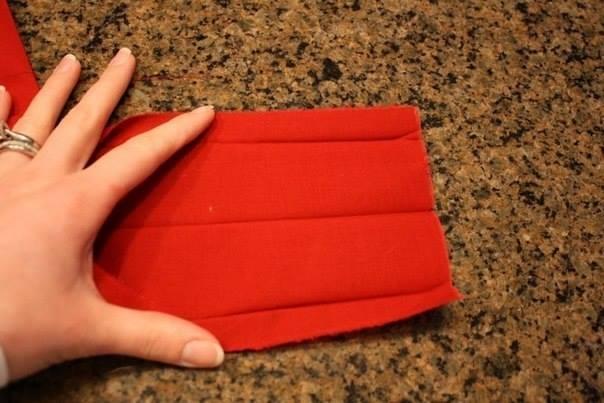 Cuando toda la tira de tela esté acomodada la vamos a coser con hilo y aguja.
