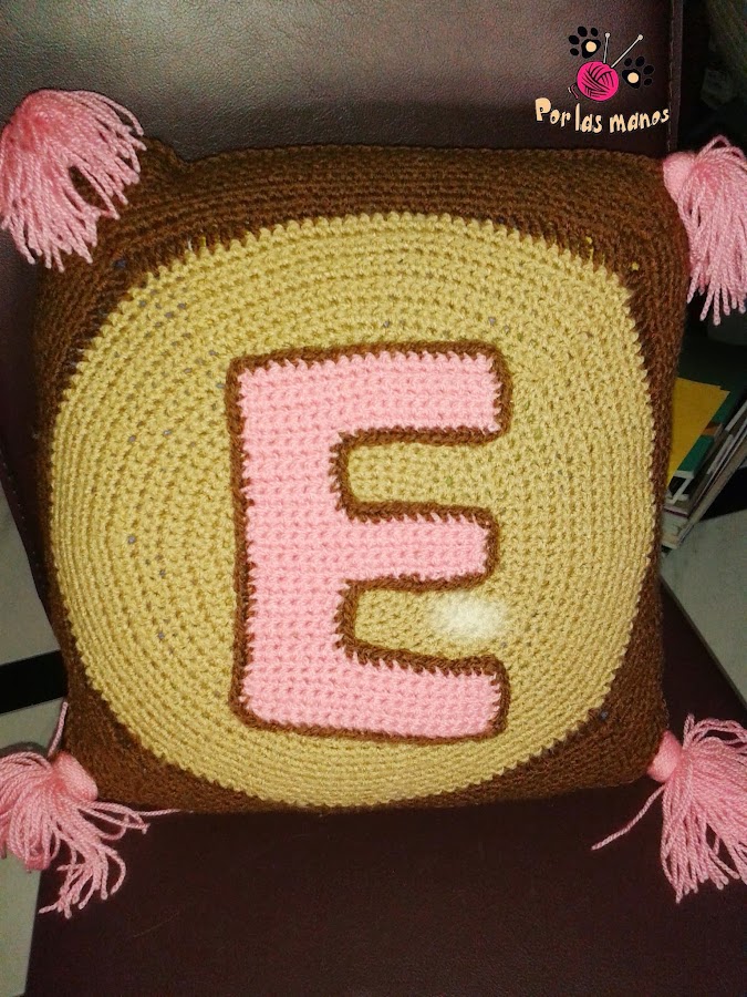 ¡Cojín de crochet 'E' !