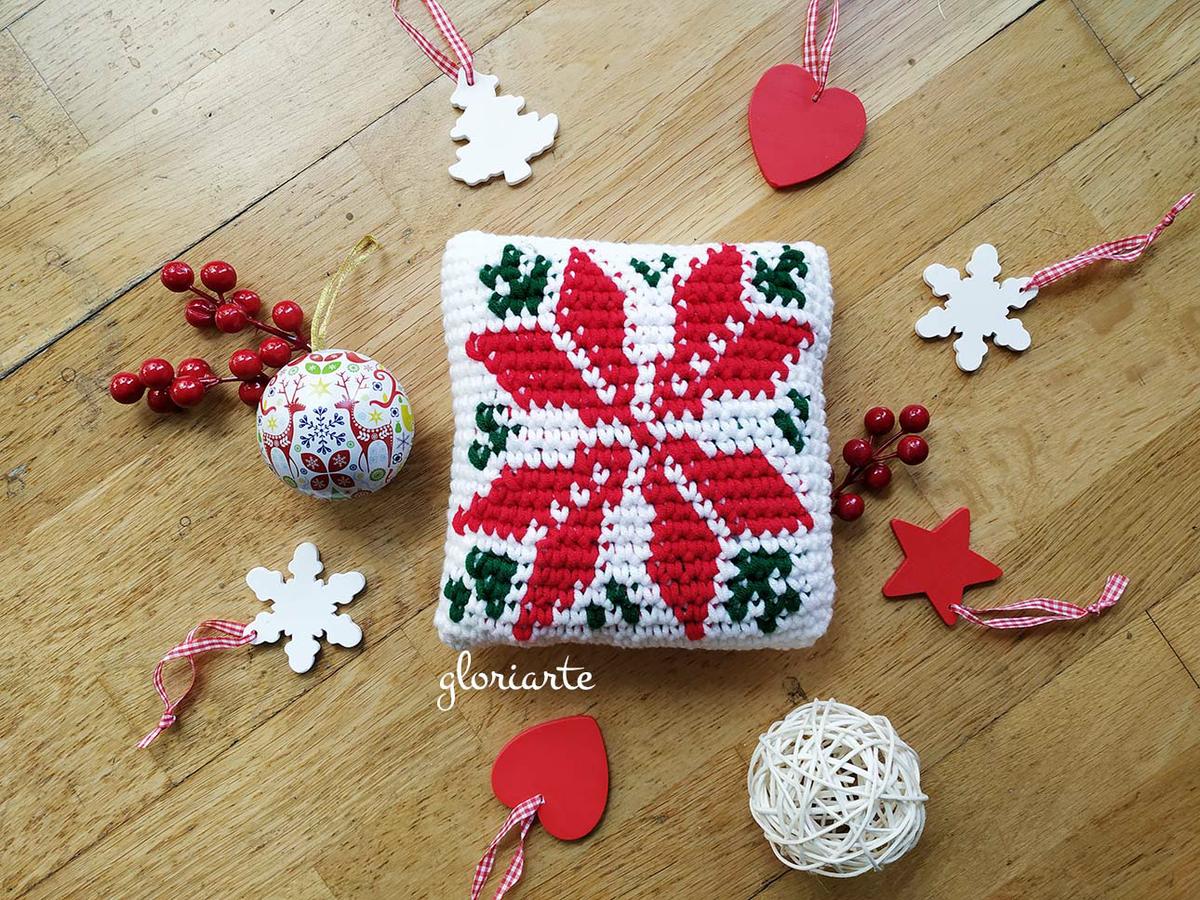 Cojín muy navideño, perfecto para aprender o practicar la técnica tapestry o jacquard en crochet o ganchillo, tejemos este bonito cojín sencillo y fácil de realizar .