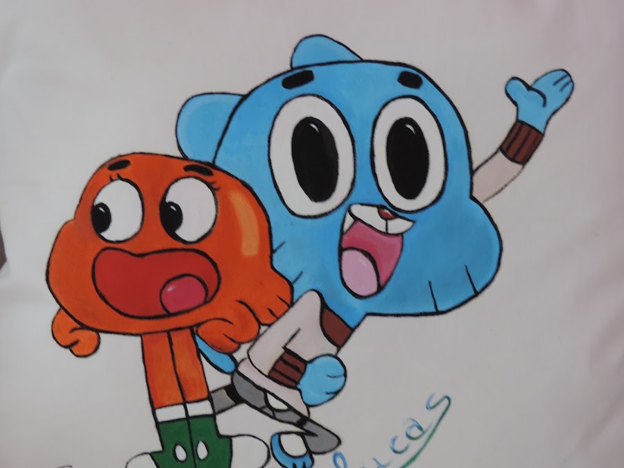 A los niños les encantan estos dibujos, a mis hijos también les gustan mucho, aunque si he de ser sincera yo los veo un poco raros. Darwin es un pez con brazos y piernas y Gumball es un gato azul, en la serie son hermanos adoptivos.