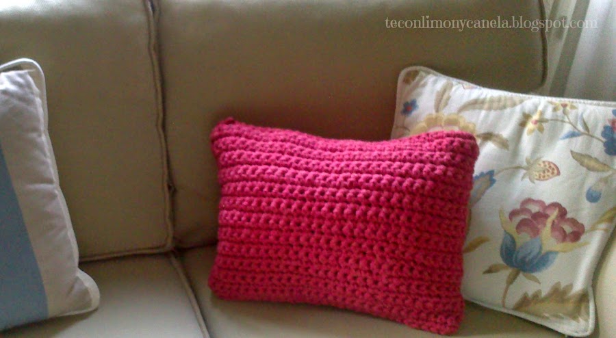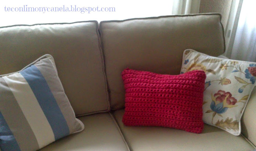 Y busqué el cojín del tamaño que yo quería, y a ganchillear...