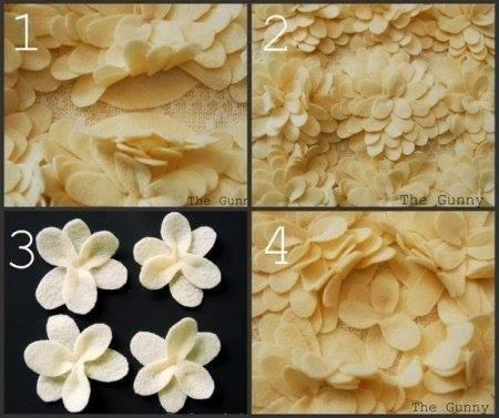 Pueden coser los pétalos al círculo base o pegar con la silicona caliente.