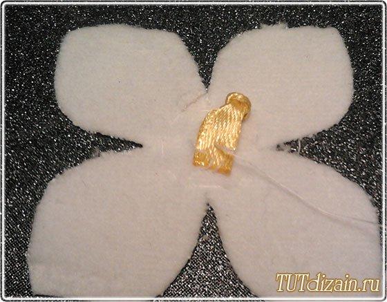 Cosemos el círculo en el medio de cada flor como está indicado en los moldes y luego ajustamos el hilo. Esto les dará a las flores un aspecto más natural. Para un cojín necesitaremos aproximadamente 16 flores.