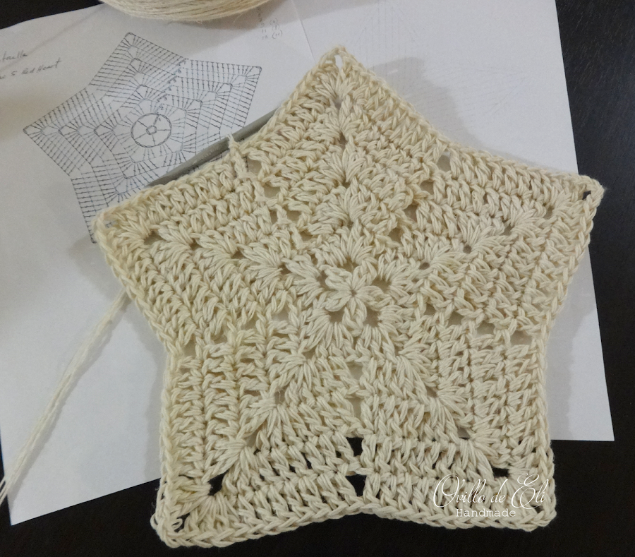 Como para este desafío las fechas se me presentaron justas y sin algunos materiales en casa, por ahora presento la estrella que formará el cojín. Traté incluso de formar un pequeño cojín alfiletero con este hilo color celeste... pero el tiempo se me vino encima, por fortuna la parte del crochet esta terminada, les comparto que trabajar el crochet me da relax...