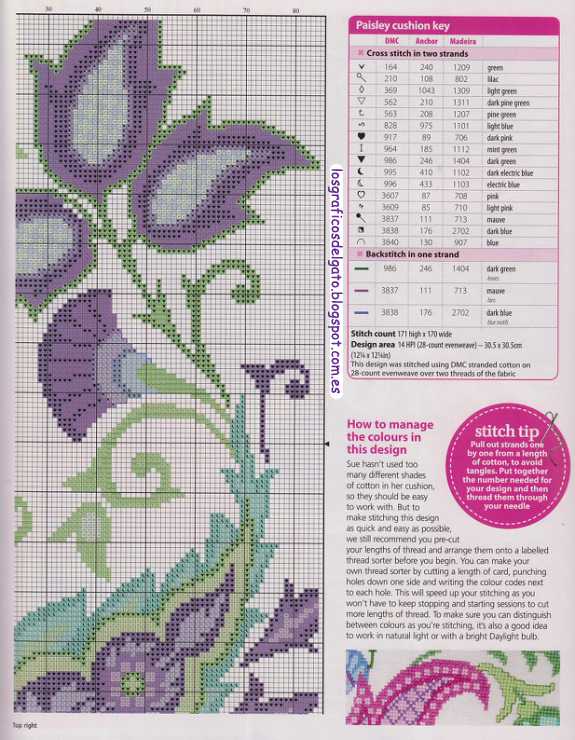 Bonito gráfico para realizar un cojín floral...