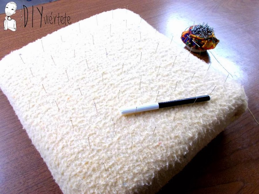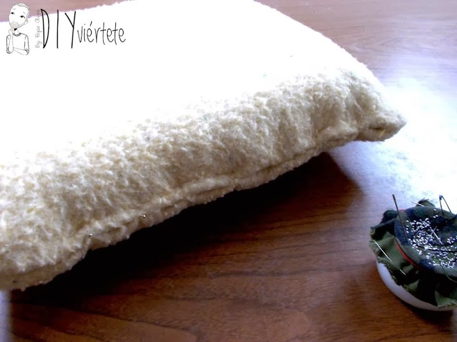 En la imagen que me inspiré creo que estaba hecha de fieltro, supongo que quedará mejor. Yo la hice con una manta vieja que tenía por casa, porque el color era ideal. La lavé y la depilé, si si, le quité las bolitas con una cuchilla de afeitar y me puse manos a la obra.