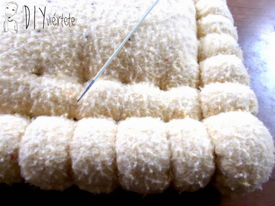 Ahora haz puntadas, "capitoné" por toda la superficie de la galleta,