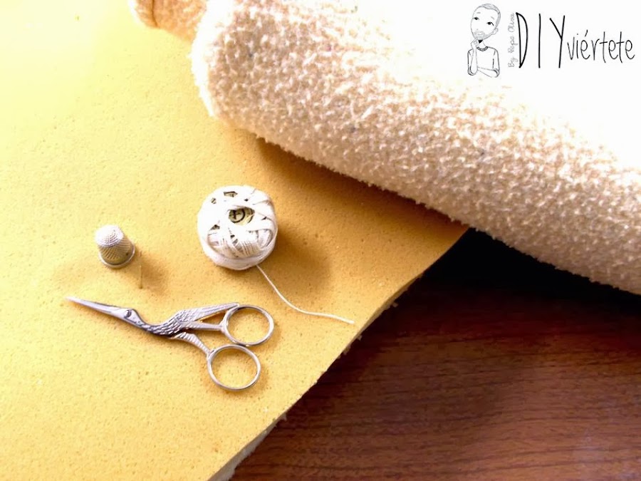 Necesitarás tela o fieltro color "galleta", gomaespuma,