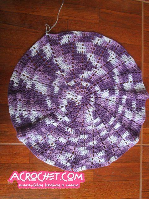 Una vez terminada la puntada, tejeremos hasta el diámetro que nos guste. Yo he tejido mas o menos 40 cm de diámetro. Cortamos el hilo y comenzamos la segunda parte, es decir, tejemos otra pieza del mismo tamaño.