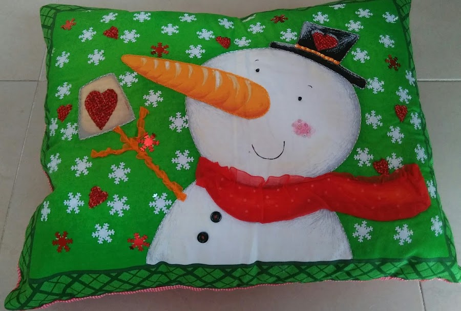 Aquí el resultado tras muchas horas de aguja. Cuando hice el cojín aún no tenía máquina de coser, así pues, es 100% hecho con mis manos y mucho cariño.