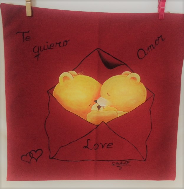 Y cosido el cojin procedo a hacer el dibujo y luego pintar...