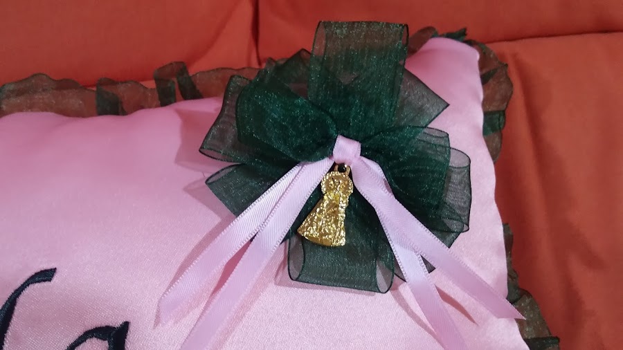 EN COLOR ROSA CON LOS DETALLES EN VERDE BOTELLA,COMO TU TRAJE