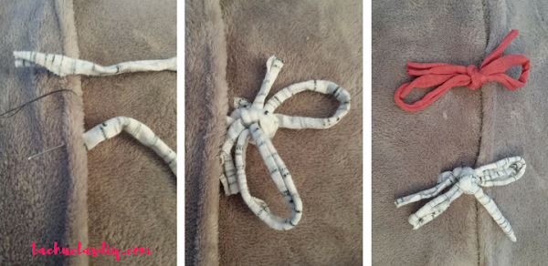 He aprovechado los restos de trapillo para realizarlos,los he cortado de la misma medida y he cosido cada uno en un lado frente al otro para cerrar formando un lazo.