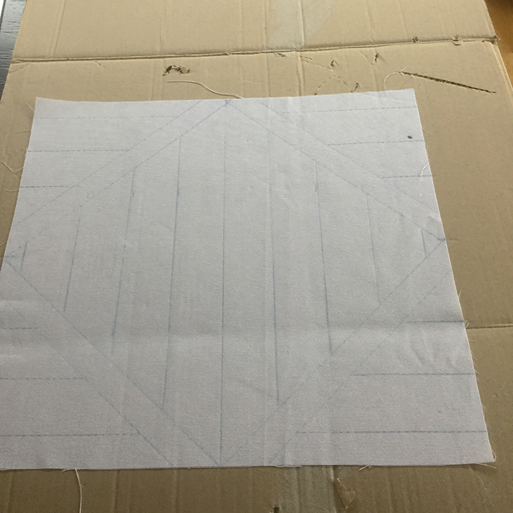 - Cortar un cuadrado de tela del tamaño deseado del cojín y plancharlo bien