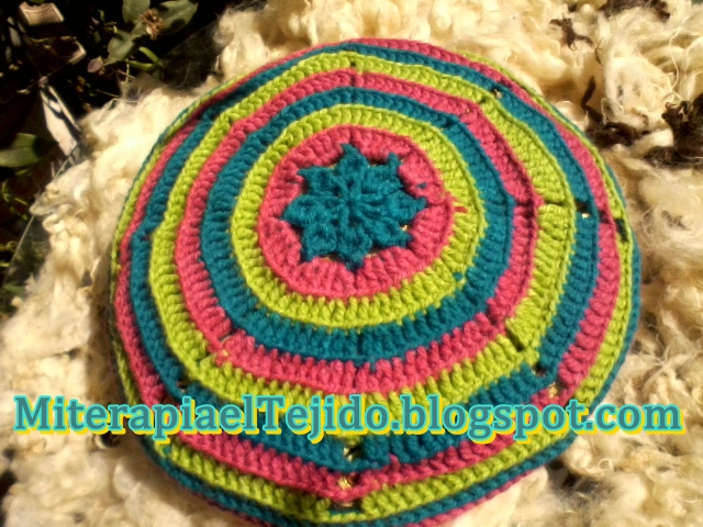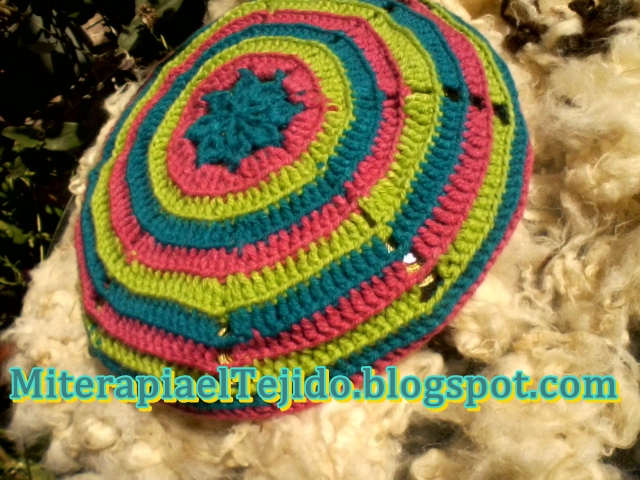 Ahora vengo a mostrarles un cojín que le hice a mi hija mayor Camila. Lo comencé aproximadamente en diciembre, pero lo deje ya que no me gusto como terminaba el patrón así es que cambie la dos últimas hileras por varetas o puntos altos. mi hija me lo estaba pidiendo hace rato hasta que salio. Para rellenarlo use lana natural de oveja y me pareció entretenido hilar un poco, y me gusto, ya les mostrare mi madeja made in Paola jajajajaja es que es un poco lento al hacerlo manualmente.