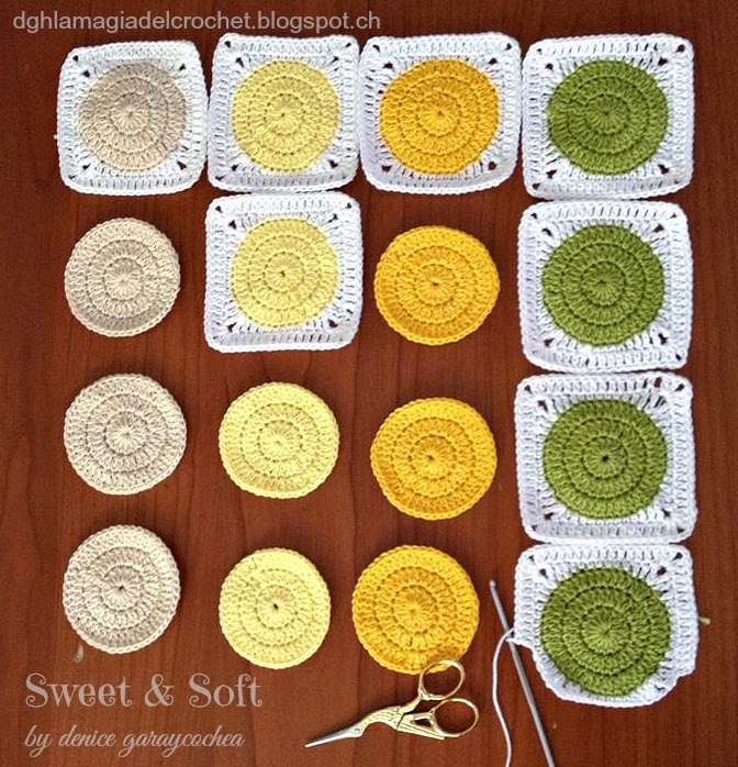 1.- Para realizar el círculo, (con el color que deseemos) comenzamos haciendo un anillo mágico y dentro levantamos 16 pa. cerramos con pd.