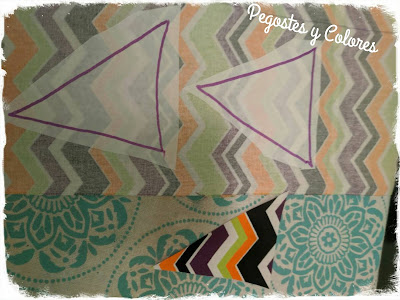 4.- Retiro la capa de papel de cada pieza y las acomodo sobre el rectángulo de mi funda, teniendo cuidado de donde quiero que este cada una, con el adhesivo hacia abajo.