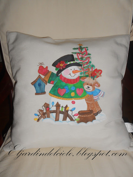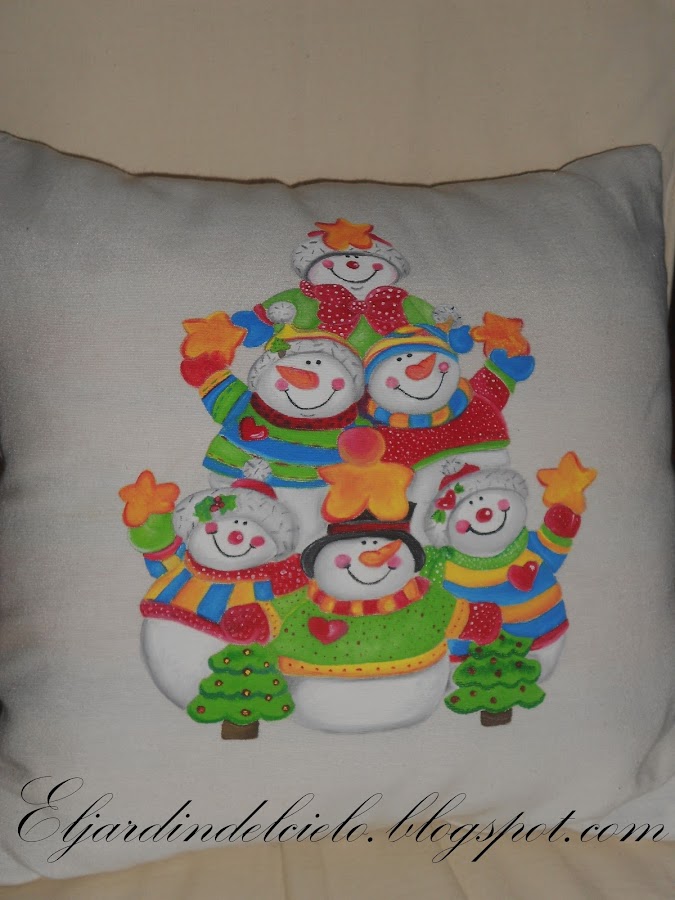 Estos cojines de Navidad los pinté hace ya un par de años pero como siempre, dejé uno a medias y este año se me ha ocurrido terminarlos.