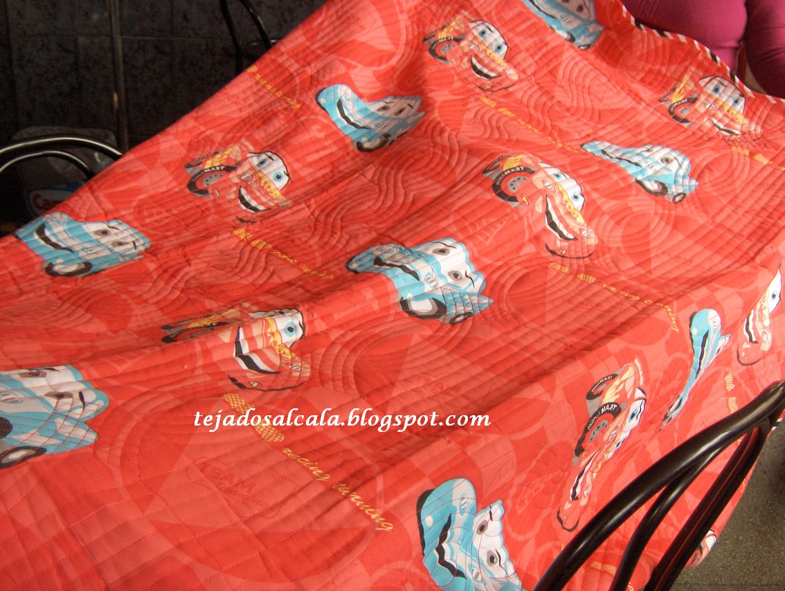 Y la manta como no podía ser otra cosa, más coches. Aquí aproveche una tela que ya viene acolchada y guateada con diseños de la pelicula Cars de Disney