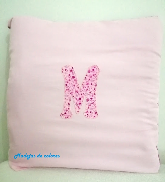 Seguimos con la M más sobria de Manuel, (señor mayor), en color crudo sobre fondo gris. En la orilla se aprecia la manta azul marino.