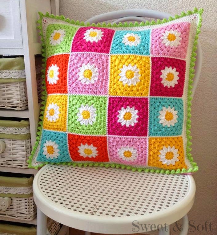 En cambio este otro es muy fresco, primaveral, alegre, aun no le tengo lugar pero seguramente lo encontraré!!! El modelo lo podrán encontrar en Color"n Cream, algunos colores los he variado, el borde lo ví en el blog Heidi Bears.
